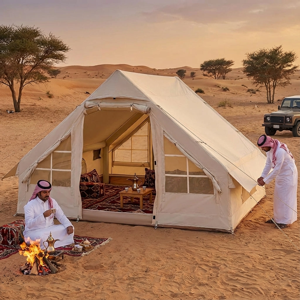 ارتقِ بتجربة الكشتات وطلعات البر إلى مستوى جديد من الرفاهية والسهولة مع الخيمة الهوائية العائلية. وداعاً لتعقيدات الأعمدة الحديدية والتركيب التقليدي؛ فهذه الخيمة تعتمد على هيكل هوائي ذاتي الدعم يمنحك مجلساً جاهزاً في دقائق معدودة، لتتفرغ للاستمتاع بالطبيعة والسمر مع العائلة والأصدقاء.